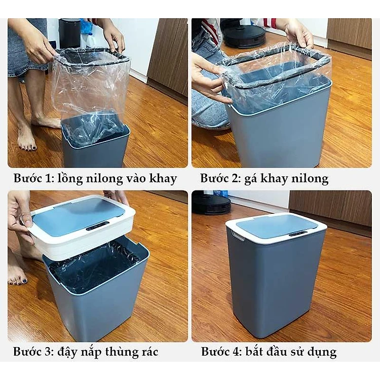 Thùng Rác Cảm Ứng Tự Động Thông Minh Pin Sạc Cổng USB Bản Nâng Cấp 2022 Cảm Ứng Kép 3 Chiều Dung tích 14L Chống Nước Tốt