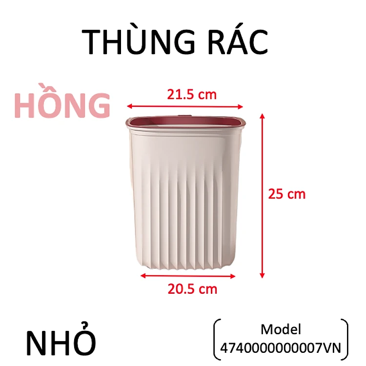 Thùng rác, thùng rác nhựa, chất liêu nhựa dẻo - Chịu lực tốt - Có vòng cố định túi rác - Thay túi rác dễ dàng - Màu hồng