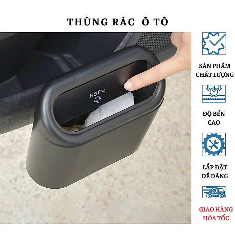 Thùng rác mini có nắp, hộp đựng rác có chốt cài treo thành cửa treo lưng ghế ô tô, xe hơi