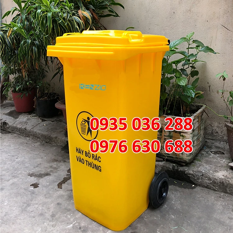 Thùng rác nhựa KENZIO 120 lít - màu Xanh, Vàng, Cam