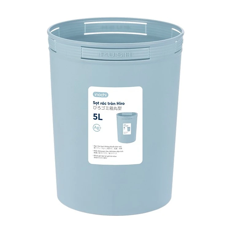 Thùng Rác Nhựa Tròn Cao Cấp 5 Lít Inochi Nhật Bản (184 x 184 x 234 mm) - Giao màu ngẫu nhiên