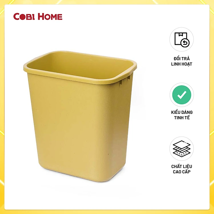 Thùng rác nhựa vuông 13L - màu vàng và xám