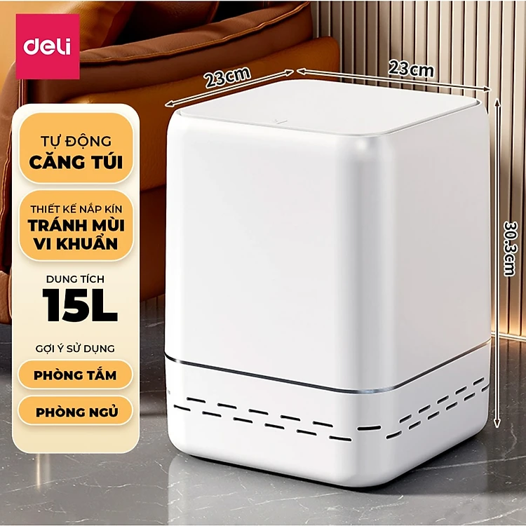 Thùng rác tự động căng túi rác 12L/15L DELIxVUSIGN thiết kế dáng dẹt tiết kiệm không gian, tối ưu nhà cửa