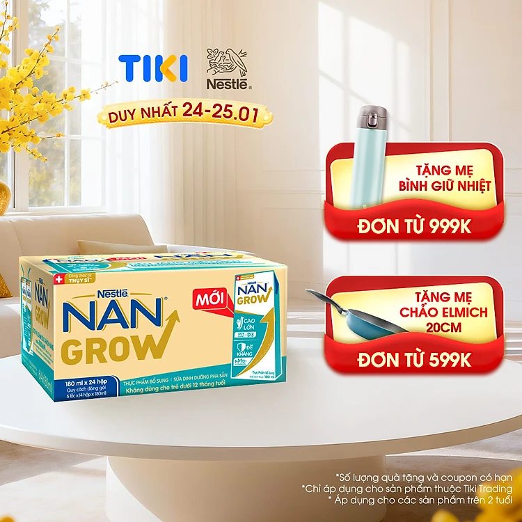 Thùng sữa bột pha sẵn Nestlé NANGROW 6(4x180ml) sữa mát công thức từ Thụy Sĩ với 100% Canxi giúp bé cao lớn vượt trội dành cho bé từ 1 tuổi