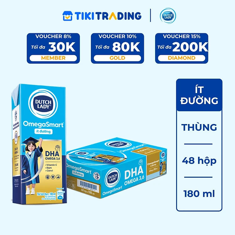 Thùng 48 hộp Sữa Dinh Dưỡng Dutch Lady OmegaSmart Ít Đường 180 ml