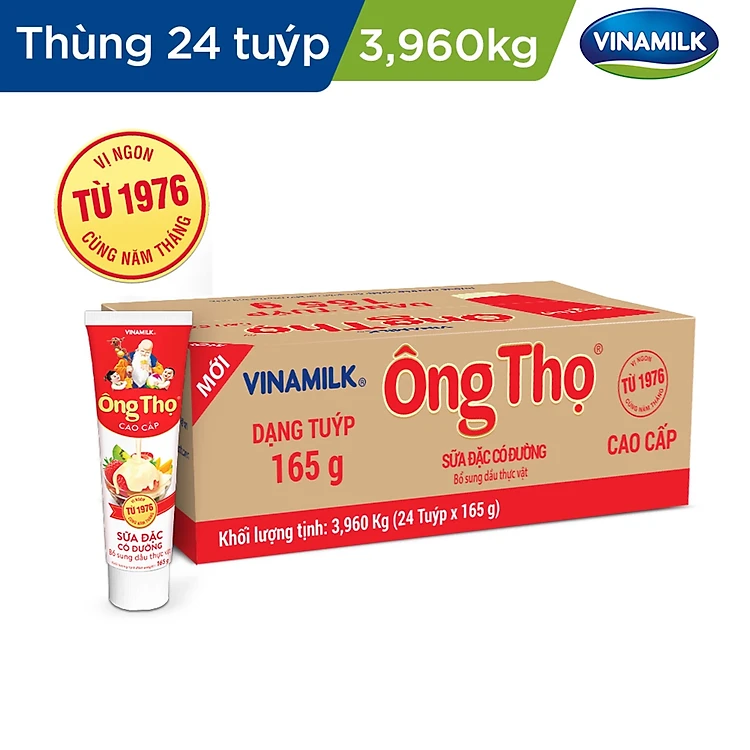 Thùng Sữa Đặc Có Đường Vinamilk Ông Thọ Đỏ (Tuýp 165g)