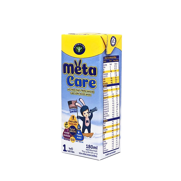 Sữa nước Metacare pha sẵn với hệ công thức TotalGrow đột phá với 4 cơ chế tối ưu, giúp bổ sung dinh dưỡng, các vitamin và khoáng chất cần thiết cho sự phát triển của trẻ sơ sinh và trẻ nhỏ, đáp ứng 100% khuyến nghị FDA Hoa Kỳ, giúp hỗ trợ phát triển não bộ, miễn dịch và thể chất của trẻ.