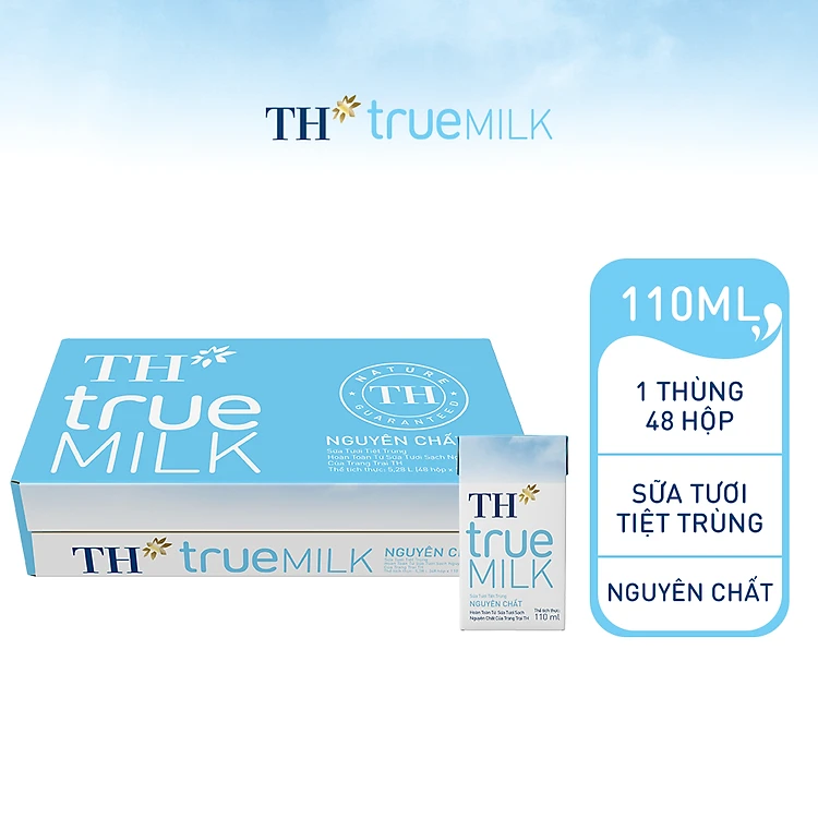 Thùng 48 hộp sữa tươi tiệt trùng TH true MILK nguyên chất 110 ml (110 ml x 48)
