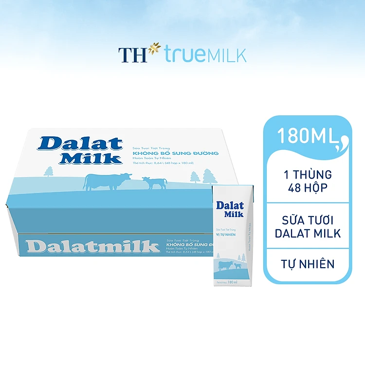 Thùng 48 hộp sữa tươi tiệt trùng Dalatmilk vị tự nhiên 180 ml (180 ml x 48)