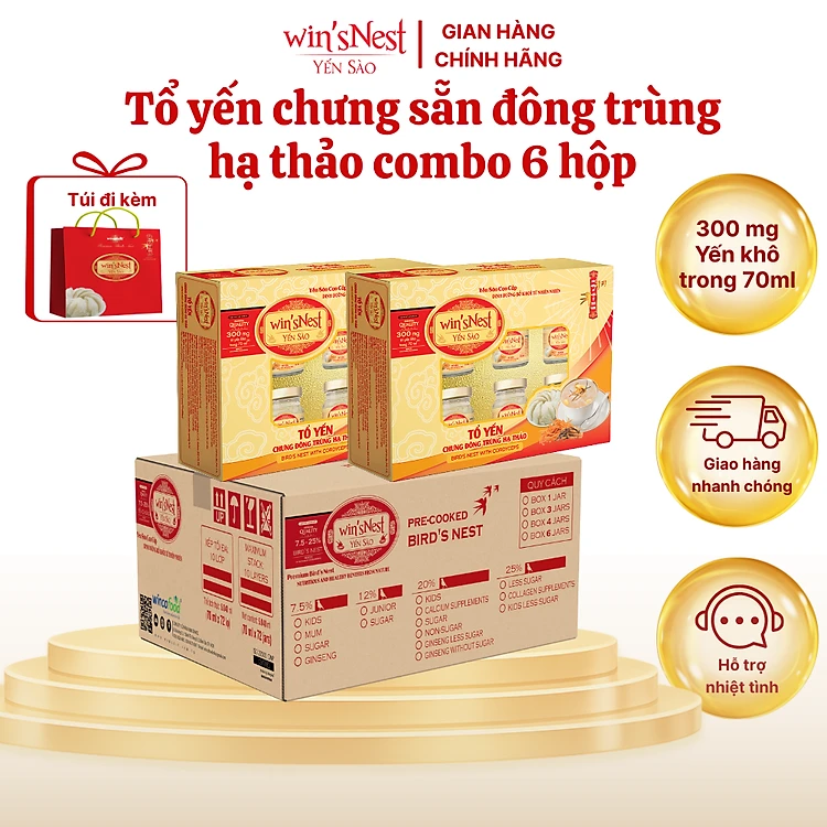 Thùng 6 hộp Yến Sào wins'Nest 300mg tổ yến chưng đông trùng hạ thảo (6 Lọ x 70 ml / Hộp)