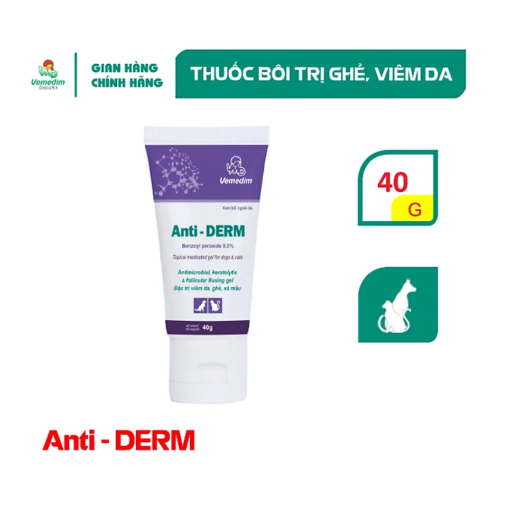 Thuốc bôi trị viêm da, ghẻ cho chó, mèo Vemedim Anti-Derm tube 40g
