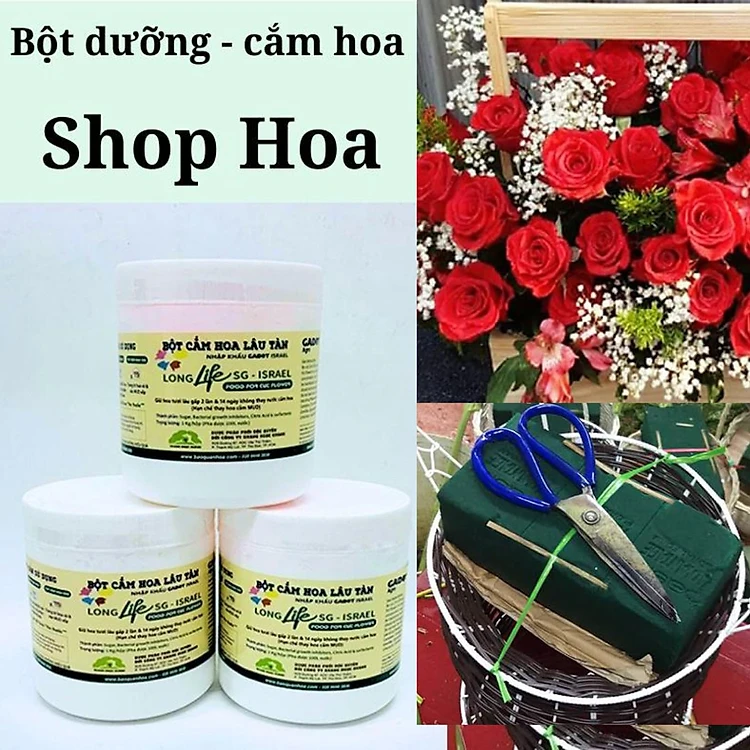 Thuốc Bột Cắm Hoa Tươi nhập khẩu Israel tại shop Florist (1 hủ pha 100L nước cắm hoa) hiệu Longlife SG là bí quyết giúp hoa cắm Xốp tươi lâu và hạn chế chăm sóc thay hoa mới