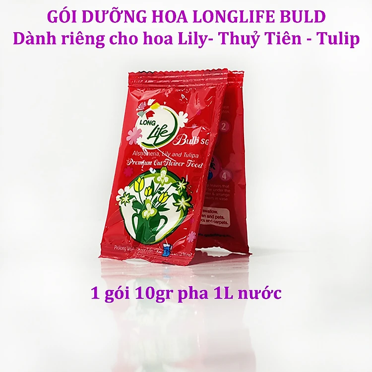 Thuốc cắm hoa Lily lâu tàn nhập khẩu Israel (1 hộp 5 gói pha 50L nước că) hiệu Longlife Bulbs Premium 2023 giúp hoa tulip và hoa lily tươi gấp 2 lần và 14 ngày không thay nước