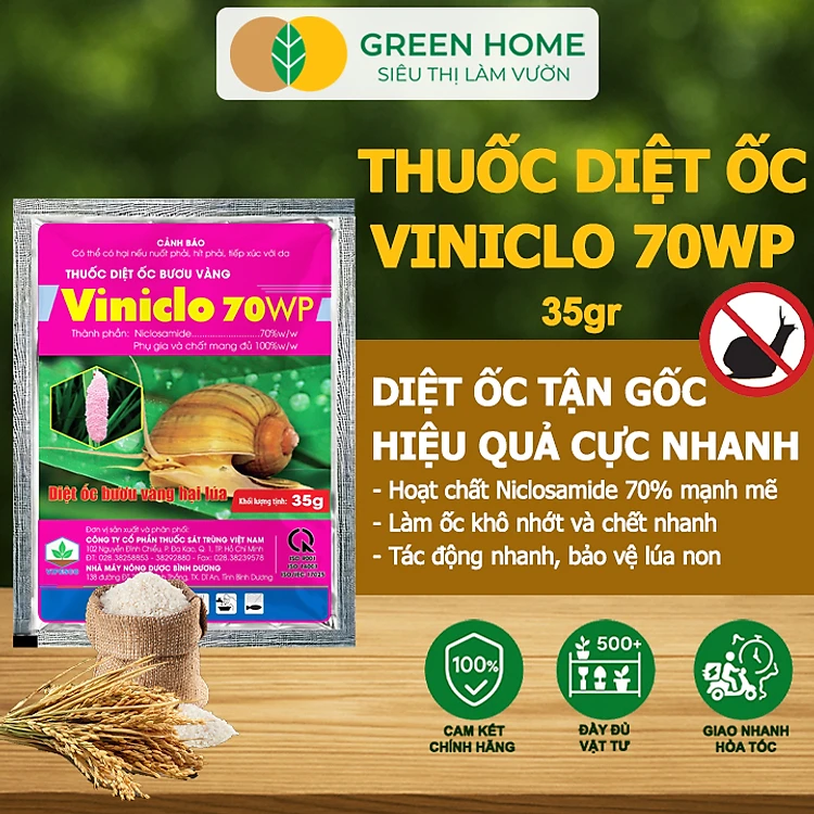 Thuốc Diệt Ốc Bươu Vàng Viniclo 70WP, GreenHome, Gói 35gr, Diệt Sạch Ốc, An Toàn Cho Lúa