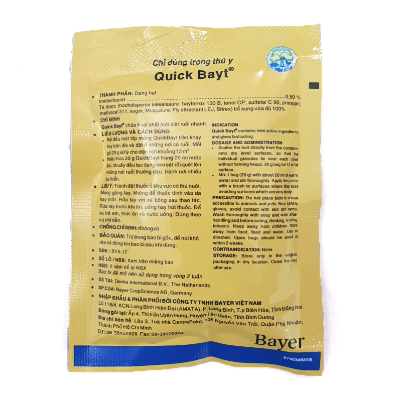 - Quickbayt chứa hoạt chất mới diệt ruồi nhanh chóng, dùng để diệt ruồi trong chuồng trại chăn nuôi