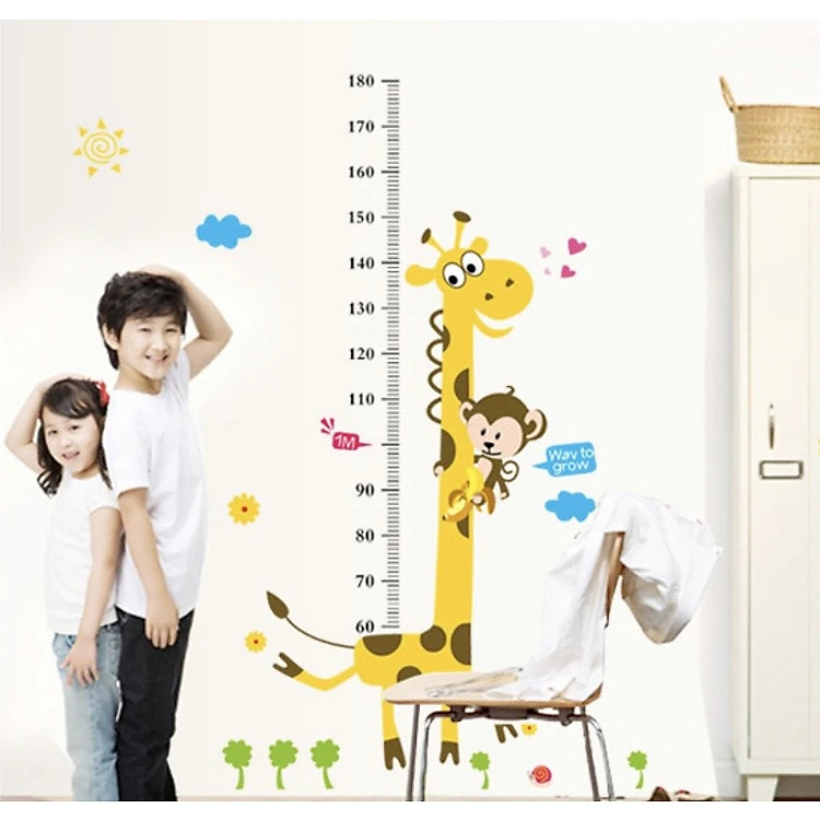 Thước đo chiều cao dán tường Hươu cao cổ & Khỉ con dễ thương