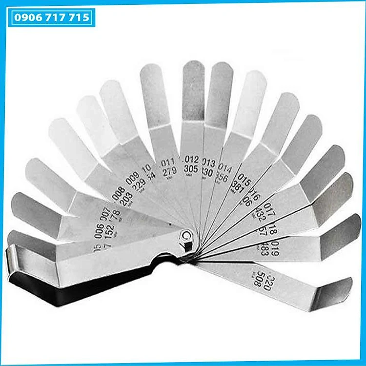 _ Bộ thước bao gồm 16 lá với độ dày khác nhau từ 0.127-0.508mm (0.005-0.020inch), cả 2 thông số hệ mm và inch đều được in laser rõ nét trên từng lá thước