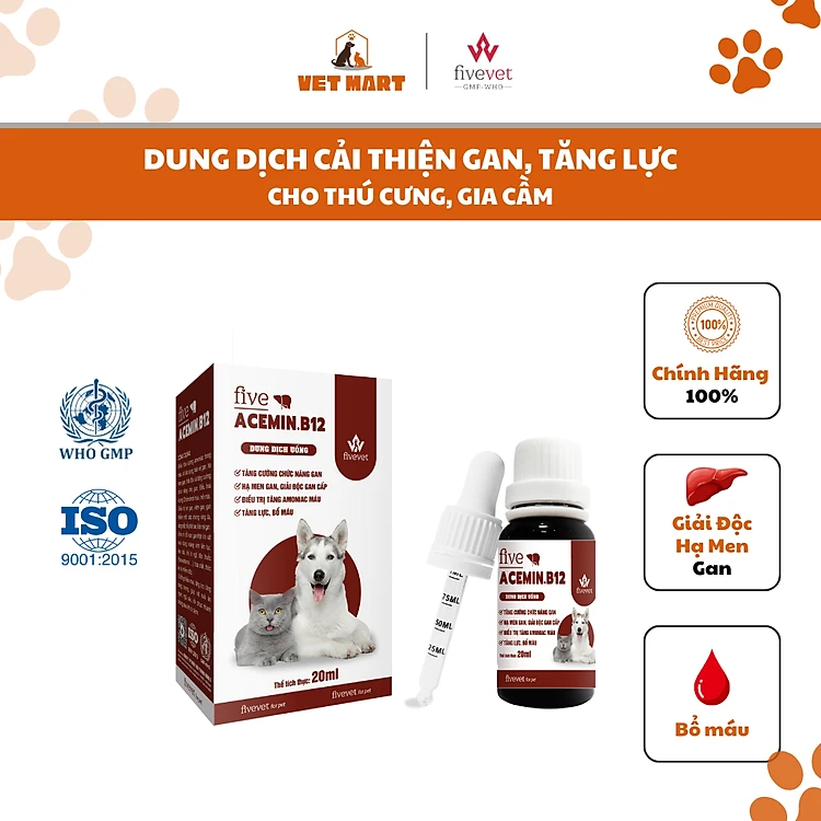 Thuốc Five-Acemin B12 For pet Hỗ Trợ Cải Thiện Gan, Bổ Sung Tăng Lực Cho Thú Cưng, Gia Cầm