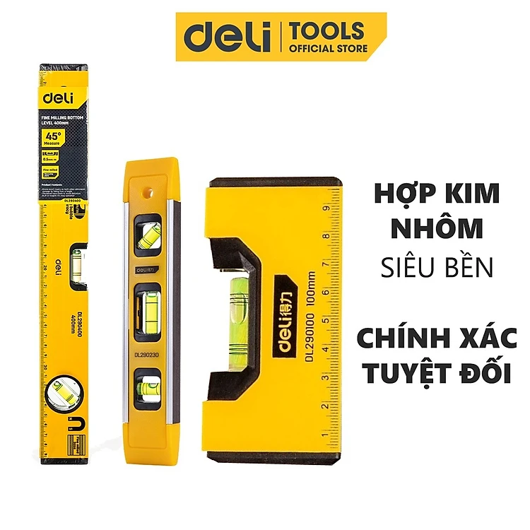 Thước Thủy Deli Cao Cấp Chính Hãng - Chất Liệu Hợp Kim Nhôm Siêu Bền, Chính Xác Tuyệt Đối, Tiện Dụng DL290230 EDL290400