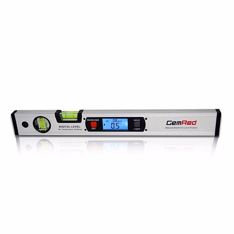 Thước thủy điện tử GEMRED 82103-400  ( DÀI 40CM) có đèn chiếu sáng nền, góc nhìn rộng và rõ trong mọi điều kiện ánh sáng. Ánh sáng đèn nền màu xanh lục. Bảng chuyển đổi đơn vị ABS và INC. Tính toán góc nghiêng, tiếp tuyến, độ tăng lên hoặc giảm xuống của góc.