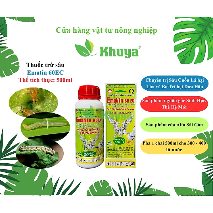 Thuốc trừ sâu sinh học Ematin 60EC 500ml Đặc trị Sâu cuốn lá và Bọ trĩ