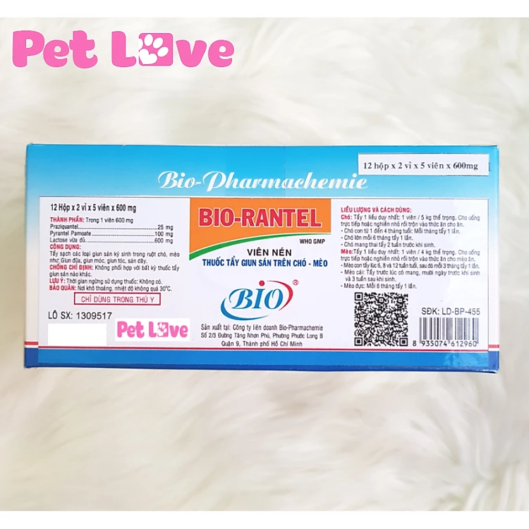 Thuốc xổ giun sán chó mèo Bio Rantel (1 hộp x 120 viên)