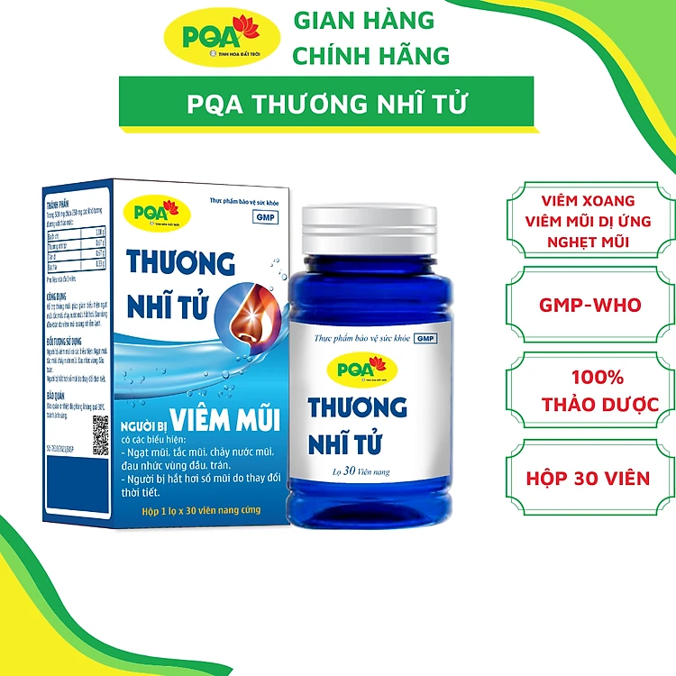 Thương Nhĩ Tử PQA Hỗ Trợ Thông Mũi, Giảm Hắt Hơi Và Đau Nhức Vùng Đầu Trán Hộp 30 Viên