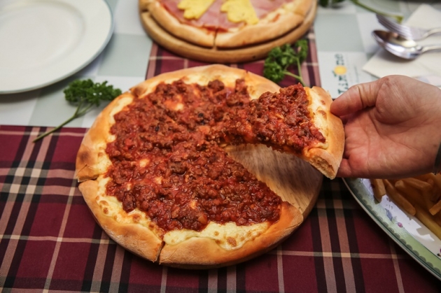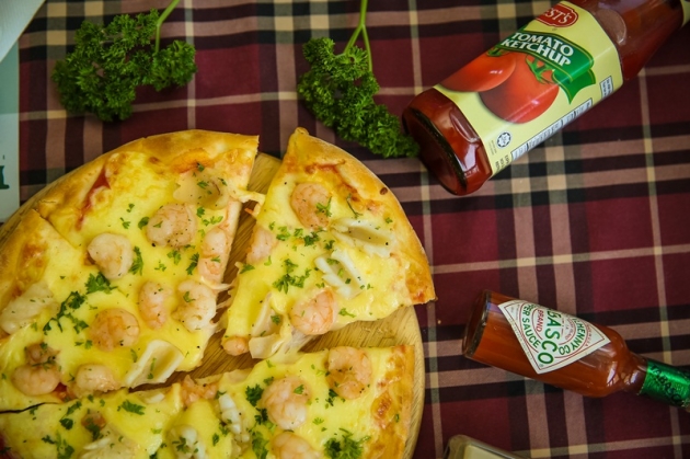 Khi Pizza được bê lên, thực khách vẫn cảm nhận được sự nóng hổi, tươi ngon. Đế bánh vàng ruộm, đảm bảo độ giòn, xốp nhất định. Bên cạnh đó, các nguyên liệu ăn kèm vừa vặn, được bao phủ bởi lớp phô mai thơm lừng, béo ngậy, ăn hoài mà không thấy chán.
