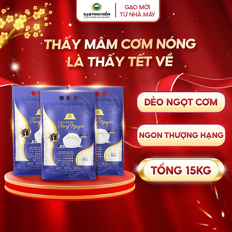 [TIẾT KIỆM] Combo 3 túi Gạo ST25 5kg Vinh Hiển - Tiết kiệm, dẻo mềm, thơm lá dứa