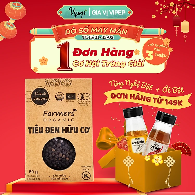 Tiêu Đen Hạt Farmers' Organic Vipep Túi Giấy 50g