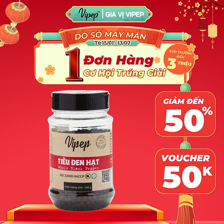 Tiêu Đen Hạt Tự Nhiên Vipep Hũ Nhựa 100g