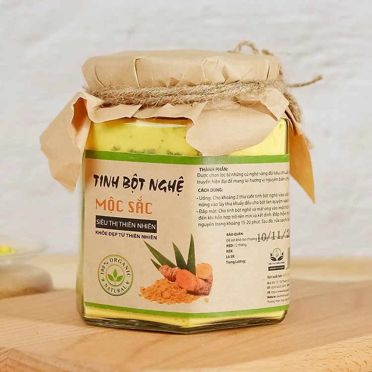 Tinh Bột Nghệ là sản phẩm có nguồn gốc hoàn toàn từ thiên nhiên, được tinh suất từ những củ nghệ tươi chọn lọc có chứa chất Curcumin. Tác dụng của Tinh Bột Nghệ được ví như loại thần dược thiên nhiên với sức khỏe cũng như việc làm đẹp. Sử dụng Tinh Bột Nghệ nguyên chất để làm da thêm phần mịn màng, sáng – trắng, tăng độ ẩm, hỗ trợ trị mụn hiệu quả. Tinh Bột Nghệ còn có công dụng rất tốt cho việc ngăn ngừa các bệnh về dạ dày, ung thư, các vấn đề về tim mạch. Tinh Bột Nghệ vừa có thể dùng để đắp mặt và dùng để uống phụ thuộc vào từng mục đích của người dùng.