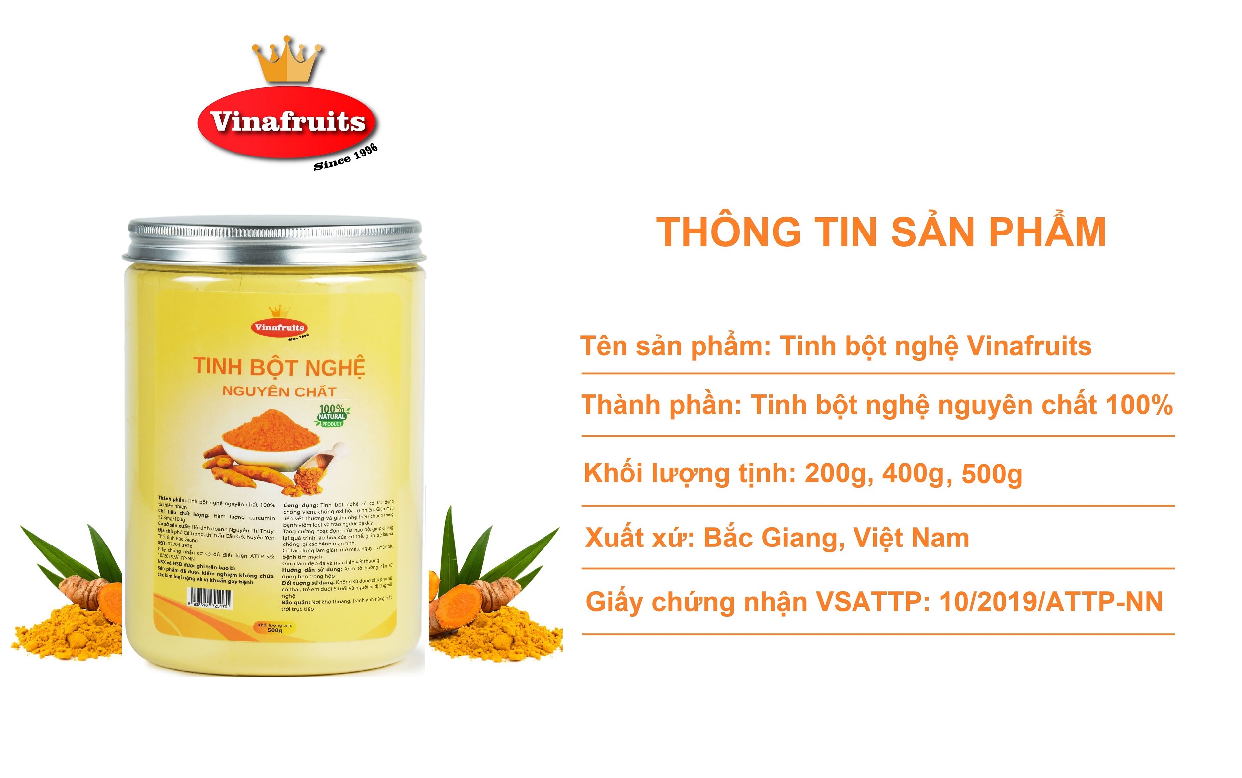 Tinh bột nghệ nguyên chất Vinafruits 500g