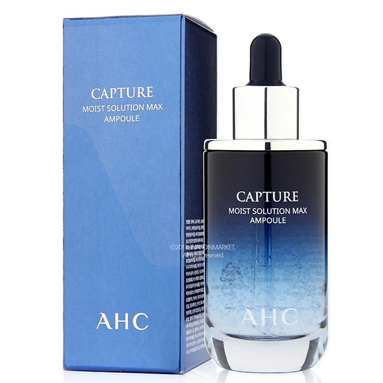 - Tinh Chất AHC Capture Moist Solution Max Ampoule có tính năng chính là cấp nước và khóa ẩm hoàn hảo cho da với chiết xuất tinh dầu oliu và hợp chất hữu cơ squalane (từ dầu thực vật) giúp cải thiện độ săn chắc và mịn màng cho da.