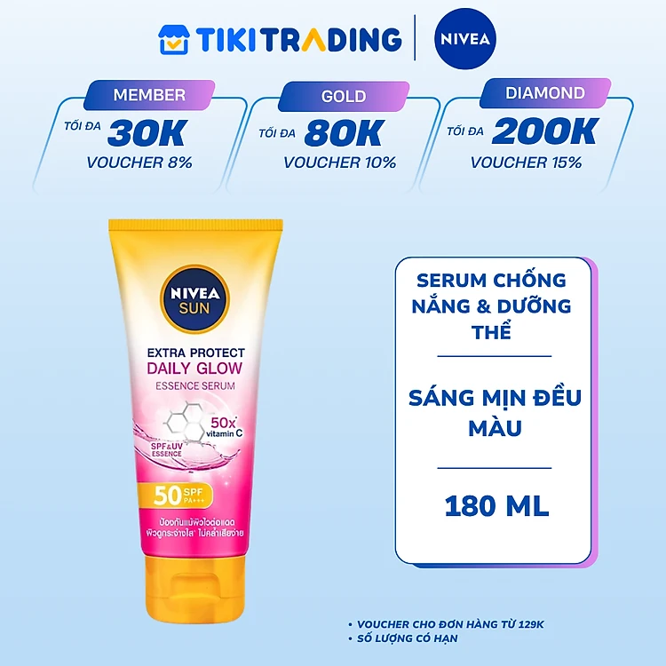Serum Chống Nắng & Dưỡng Thể Toàn Thân NIVEA SUN Spf50 Pa+++ Sáng Mịn Đều Màu Da (180 Ml) - 86092