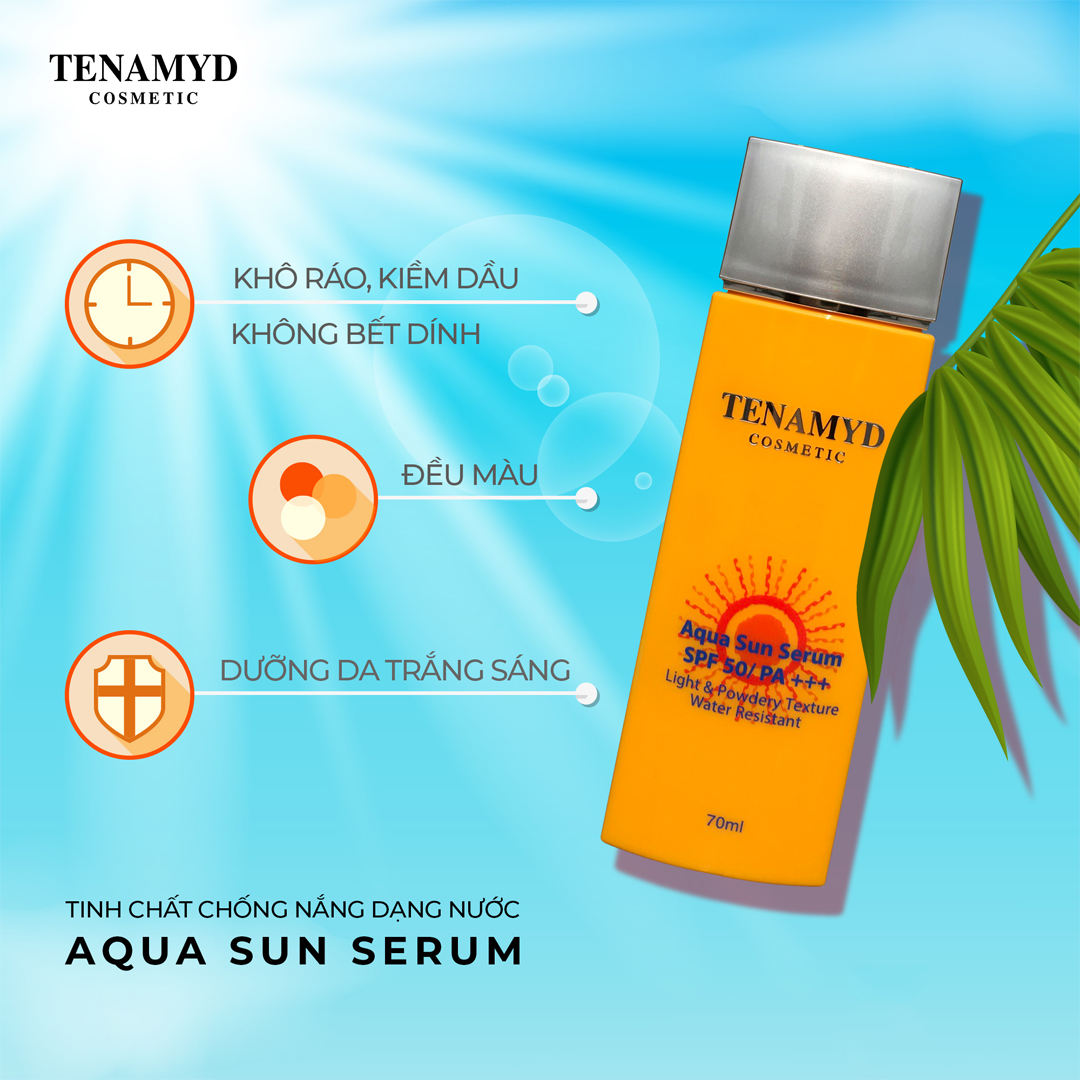 - Có thể sử dụng tinh chất chống nắng Tenamyd Aqua Sun Serum SPF 50/PA++ trước khi trang điểm hoặc làm lớp lót trang điểm để giúp da an toàn trước ánh nắng.