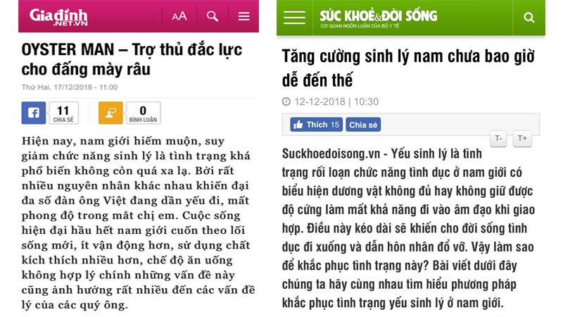 - Được báo giadinh.net.vn và suckhoedoisong.vn thuộc cơ quan ngôn luận bộ Y tế khen ngợi về công dụng tuyệt vời cho các quý ông.