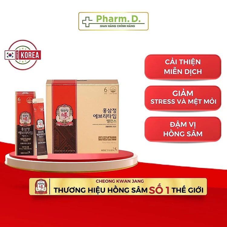 Tên sản phẩm: Tinh Chất Hồng Sâm Pha Sẵn Hỗ Trợ Sức Khỏe KGC EveryTime Balance (10ml x 30 gói, 20 gói)