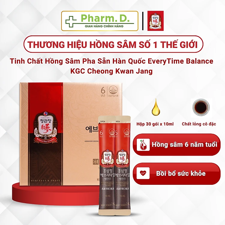 Tinh Chất Hồng Sâm Pha Sẵn EveryTime Balance KGC Cheong Kwan Jang (Hộp 20 gói, 30 gói x 10ml)