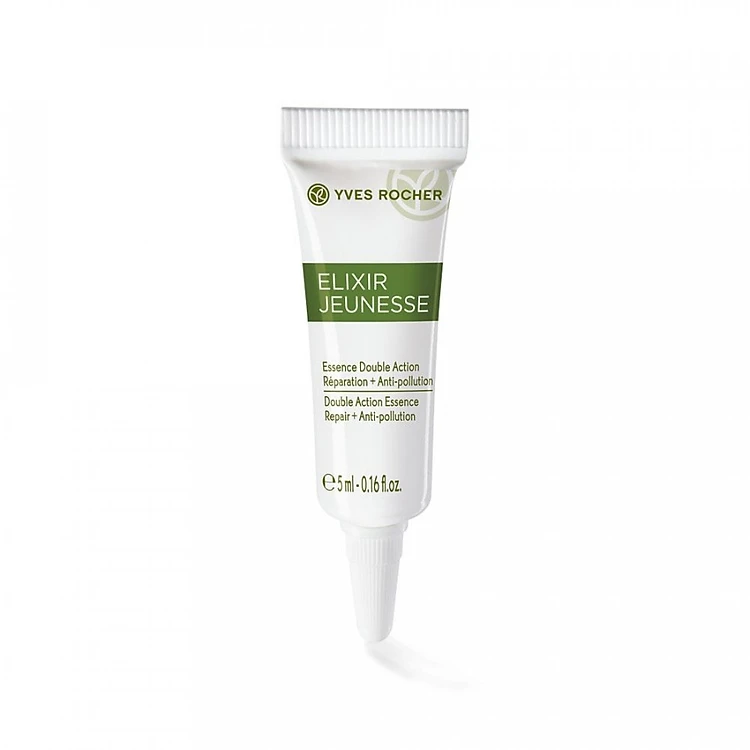 Tác động của môi trường ô nhiễm và sự mệt mỏi trong công việc là hai nguyên nhân chính khiến cho quá trình lão hóa da diễn ra nhanh chóng. Thấu hiểu điều đó, Yves Rocher đã cho ra đời tinh chất tác động kép phục hồi và chống ô nhiễm cho da Double Action Essence Reparation And Anti-pollution với 94% thành phần từ thực vật, có khả năng giúp da chống lại quá trình lão hóa, đồng thời tái tạo lại làn da đã và đang bị hư tổn, giúp là da bạn được hồi sinh với vẻ tươi trẻ và tràn đầy sinh lực chỉ sau một tháng sử dụng.