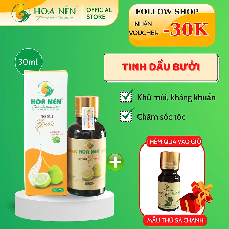 Tinh dầu Bưởi nguyên chất Hoa Nén 100ml - 3ml - Hoa Nén - Chăm sóc tóc, đẹp da, làm thơm phòng