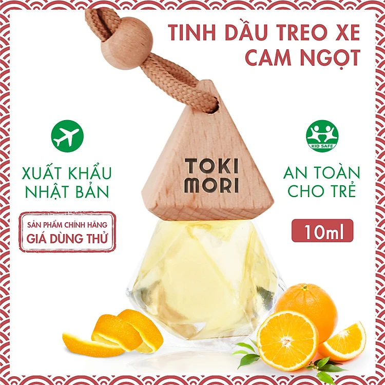 Tinh Dầu Cam Ngọt Treo Xe TOKI MORI Xuất Khẩu Nhật Bản (10ml) 100% Thiên Nhiên, An Toàn Cho Trẻ, Xông Phòng, Khử Mùi, Thơm Xe, Chống Ói, Kháng Khuẩn