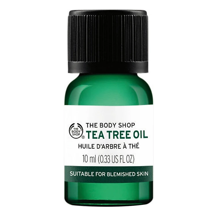 - Tinh Dầu Hỗ Trợ Trị Mụn The Body Shop Tea Tree Oil (10ml) trứ danh với đặc tính kháng khuẩn và thanh lọc mạnh mẽ, chiết xuất từ tinh dầu của những chiếc lá tràm trà được thu hoạch bằng tay trong chương trình Thương mại cộng đồng.