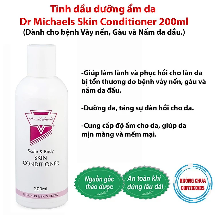 Tinh dầu dưỡng ẩm da Dr Michaels Skin Conditioner 200ml (Dành cho da Vẩy nến, Nấm da đầu và Gàu) ( Australia )