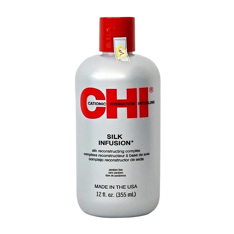 + Với thành phần dưỡng tóc tự nhiên và hương thơm quyến rũ CHI Silk Infusion sẽ giúp mang đến cho tóc bạn sự mượt mà và óng ả, giúp nuôi dưỡng và hỗ trợ điều trị tóc bằng lụa nguyên chất cùng với lúa mì và protein đậu nành thâm nhập sâu bên trong tóc.