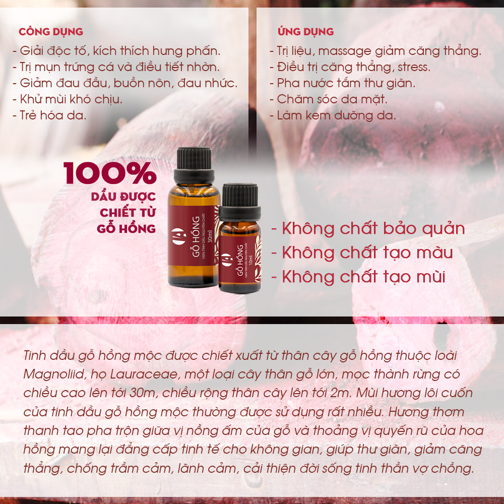 - Tinh dầu gỗ hồng vừa có tác dụng làm dịu thần kinh, vừa thanh lọc không khí trong lành.