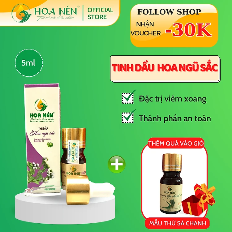 Tinh dầu hoa Ngũ sắc (cỏ hôi) nguyên chất Hoa Nén 5ml - 10ml - Đặc trị viêm xoang, viêm mũi dị ứng