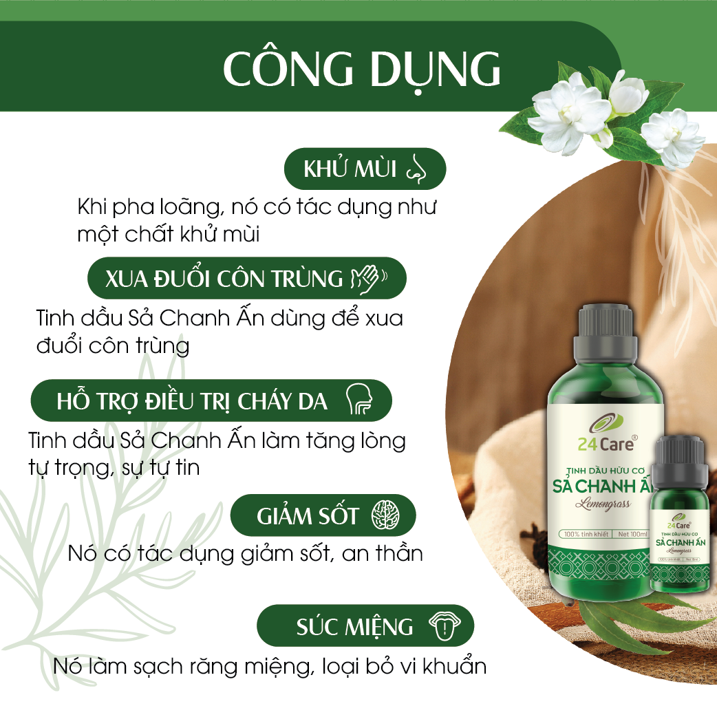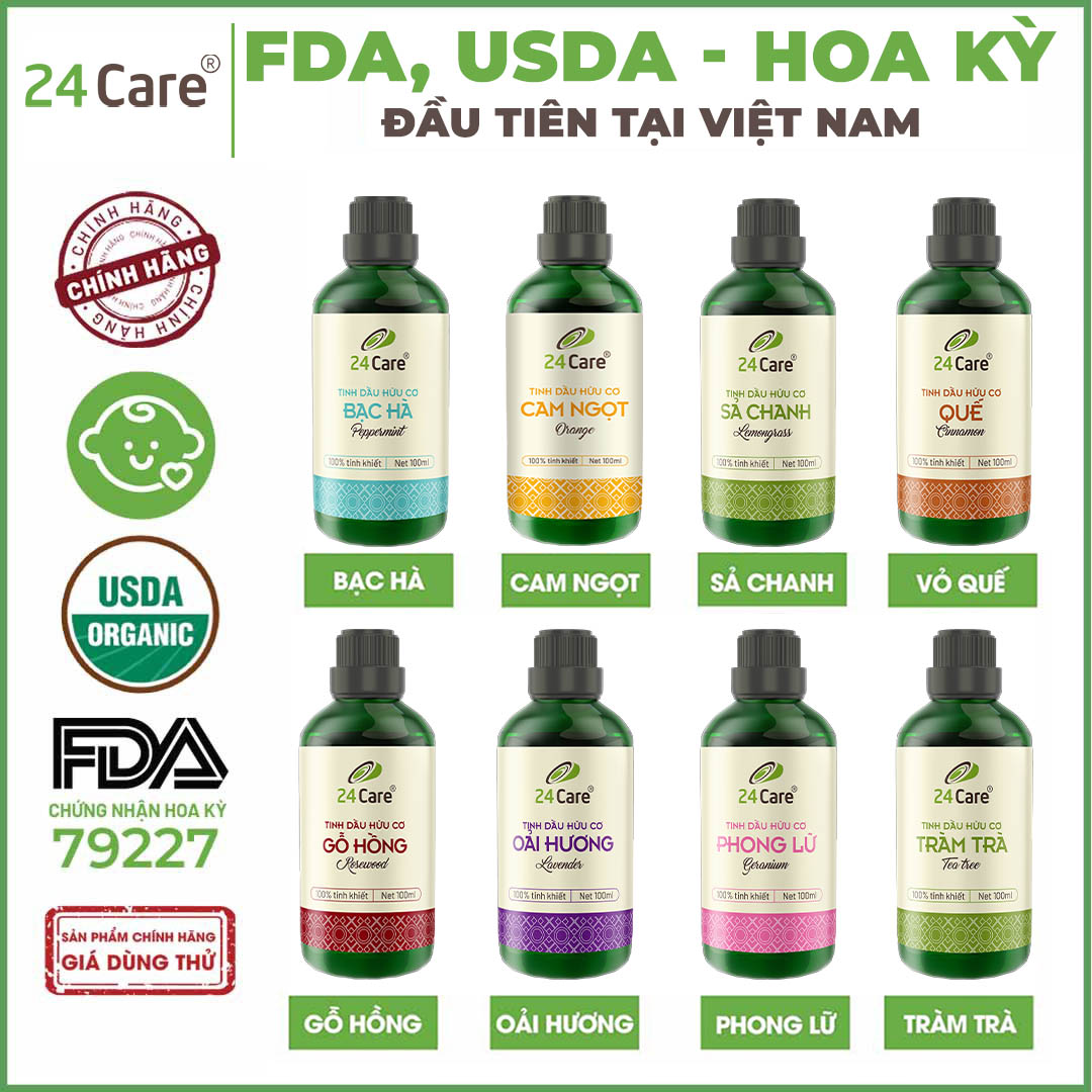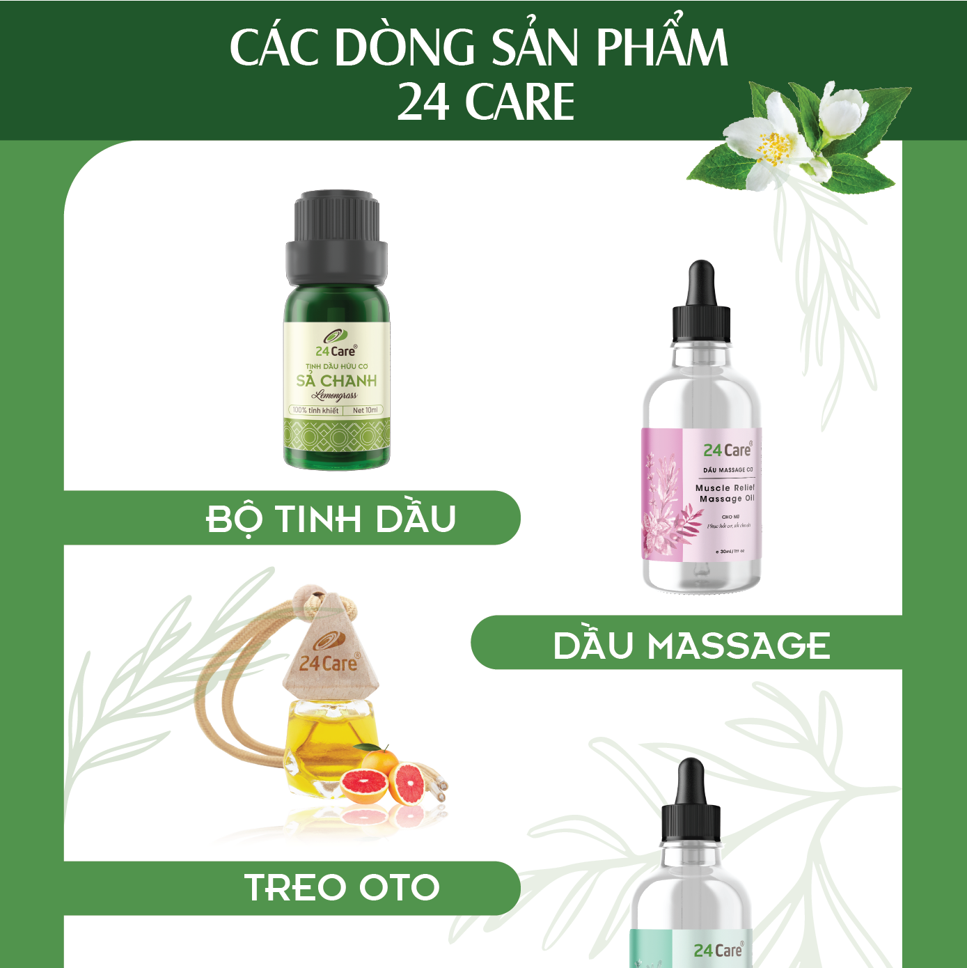 Tinh dầu nguyên chất Bạc Hà 24Care/ Sả chanh/ Quế/ Oải hương/ Bưởi/ Cam/ Hoa Lài/ Quýt/ Tràm Huế/ Hoa Hồng/ Lavender/ Ngọc Lan Tây/ Tràm Trà/ Sả Java/ Trà Xanh/ Gỗ Hồng/ Hoa Anh Đào