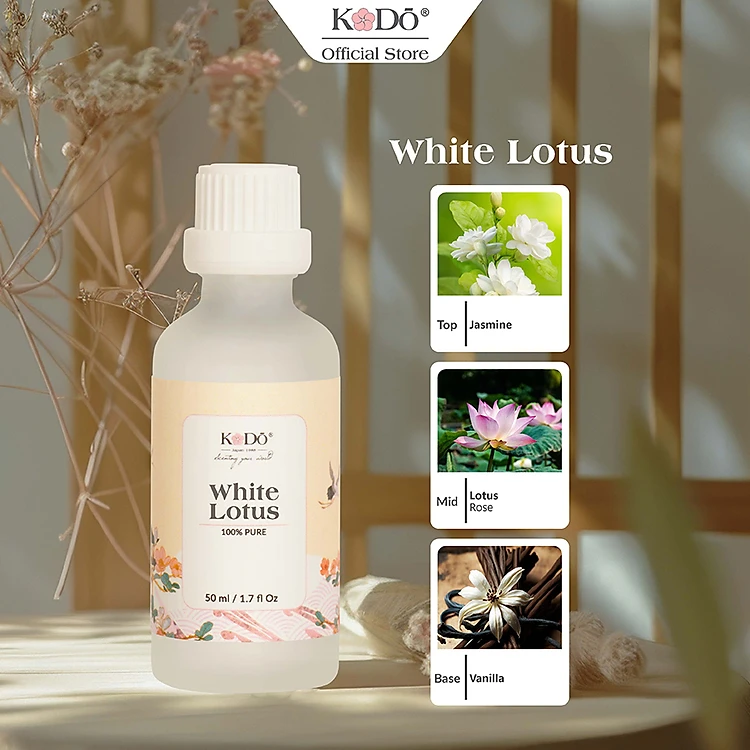 Tinh Dầu Nước Hoa Nguyên Chất Kodo White Lotus Sen Trắng - Làm Thơm Phòng, Không Gian, Quần Áo - Classic Collection - 10/50/100/500ml