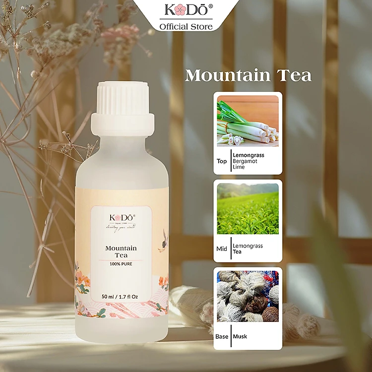 Tinh Dầu Nước Hoa KODO Mountain Tea Mùi Hương Chanh Sả Thư Giãn Làm Thơm Phòng, Không Gian 10/50/100/500ml